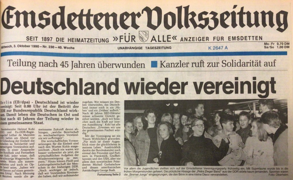 Mit diesen Fragen beschäftigt sich die Klasse 10c des Gymnasiums Martinum. Unter Leitung ihres Geschichtslehrers Daniel Peitz nimmt die Lerngruppe am bundesweiten Jugendwettbewerb Umbruchszeiten – Deutschland im Wandel seit der Einheit teil.