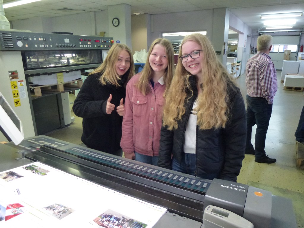 Michael Lammert, einer der Geschäftsführer, führte die drei Schülerinnen, sowie Herrn Austrup durch die Druckerei. Die Schülerinnen konnten auf diese Weise nicht nur ihr fertiges Produkt sehen, sondern hatten auch die Möglichkeit einen Blick in den Betrieb einer Druckerei zu werfen. Von den anfänglichen Druckerplatten, bis hin zu dem Umschlag, wurden ihnen alle Vorgänge genauestens erklärt. Umso gespannter sind jetzt alle auf den baldigen Start des Verkaufes der neuen Jahresschrift.