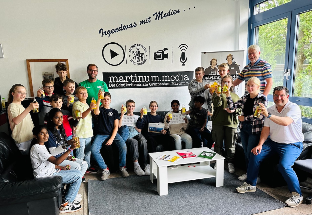 Die Schülerfirma ist natürlich dafür prädestiniert, weil nicht nur alle Martinumsschüler sondern auch Schüler anderer Schule von der neuen Ausstattung profitieren können. „Wir haben z. B. beim Videoschnitt der Pressekonferenz nach den TVE Handball-Heimspielen immer sehr lange gebraucht, nur um den Vorspann einzuarbeiten“, berichtet Schüler und martinum.media-Geschäftsführer Henri Strickmann. „Die ersten Computerteile sind bereits angekommen“, freut sich Aishviny Kunasehar, Schülerin und ebenfalls Teil der Geschäftsführung von martinum.media, die sich um die finanzielle Abwicklung des Antrages kümmert. „Es war zwar etwas aufwendig, sich in die Antragslyrik einzuarbeiten, aber zusammen mit den Schülern haben wir einen guten Antrag eingereicht und sowohl wir Lehrkräfte als auch die Schüler haben im Prozess ordentlich dazugelernt“, resümiert Daniel Peitz als betreuender Lehrer.